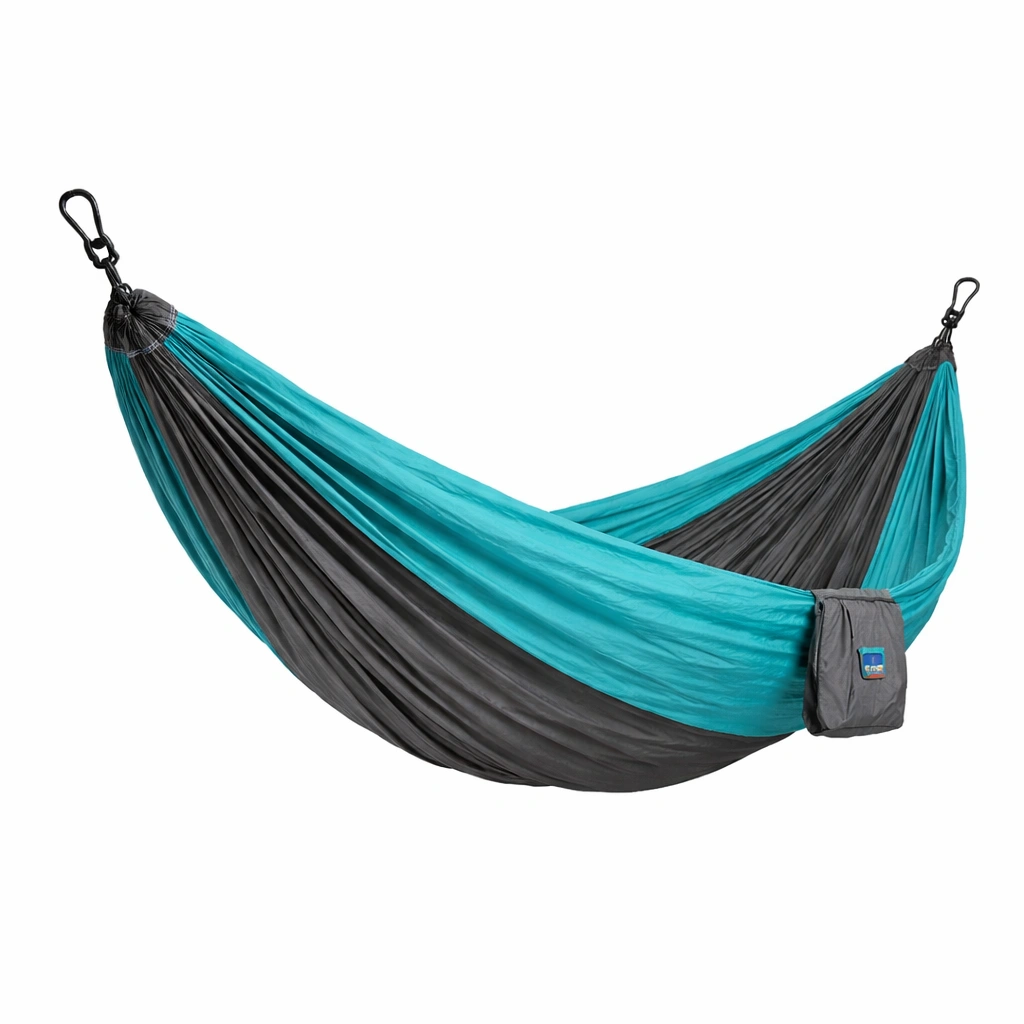 Hamaca de tela de paracaídas azul y gris para exteriores
