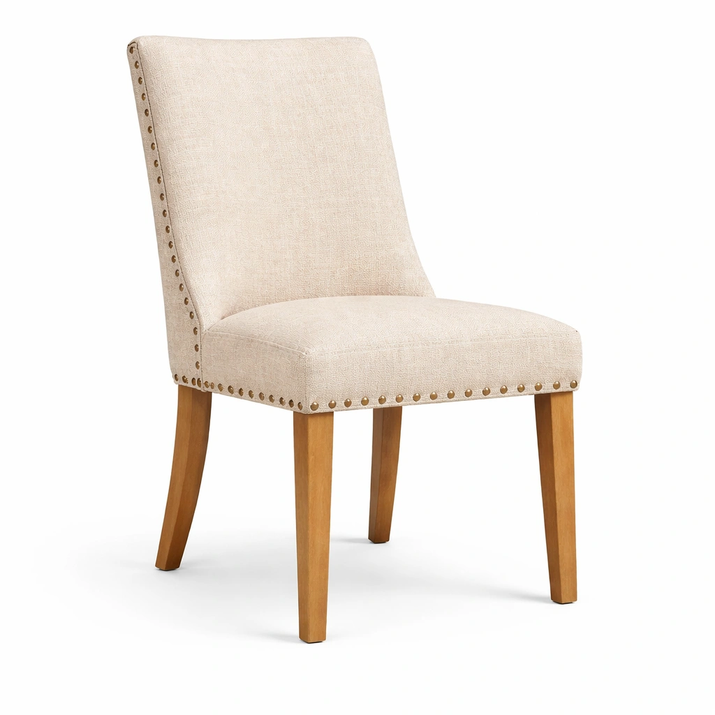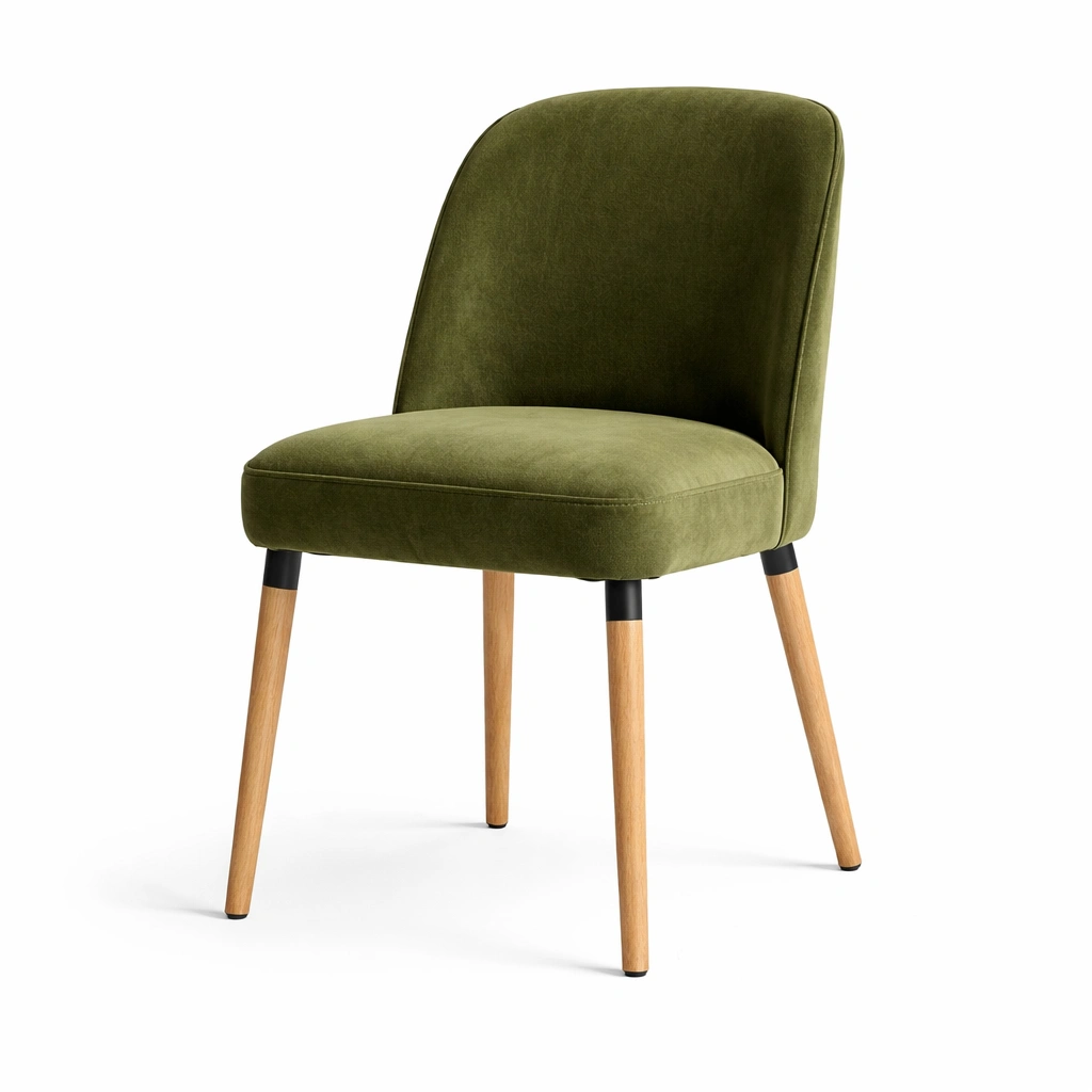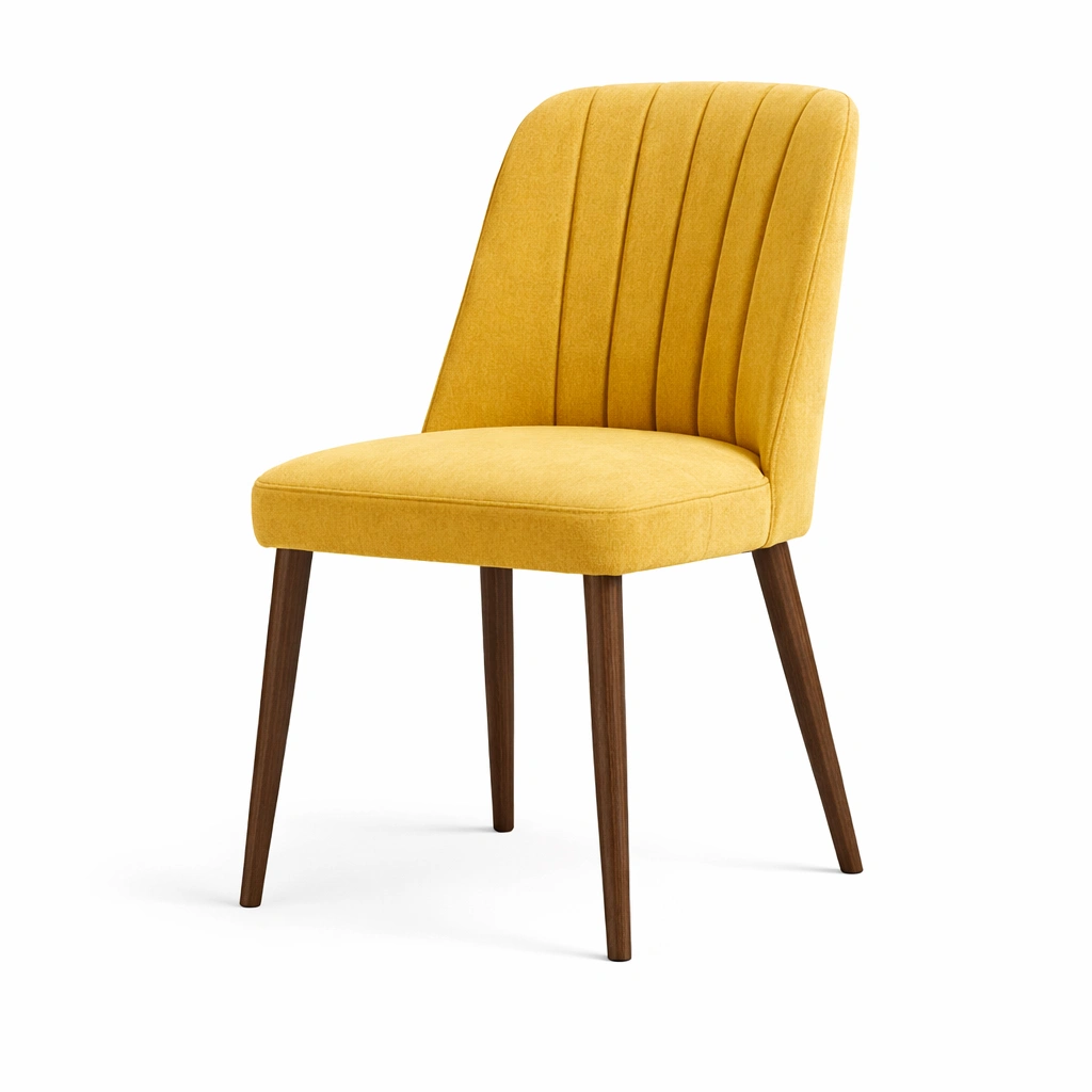 Sillas de comedor amarilla de tela de poliéster con patas de madera