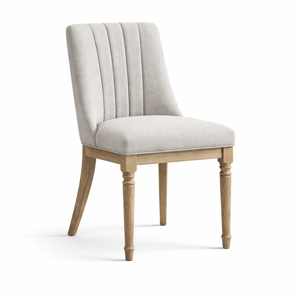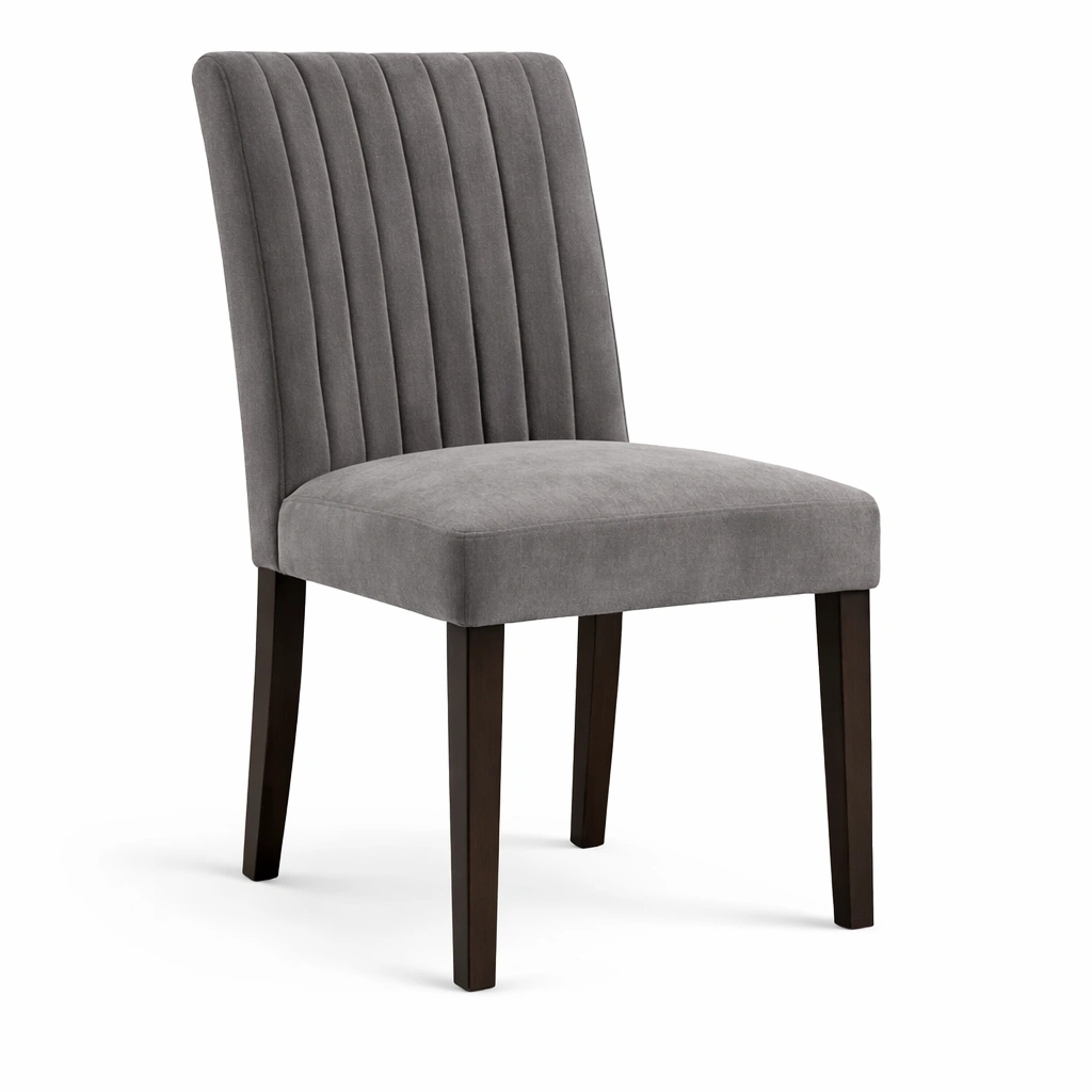 Sillas de comedor tapizadas en poliéster gris con estructura de madera