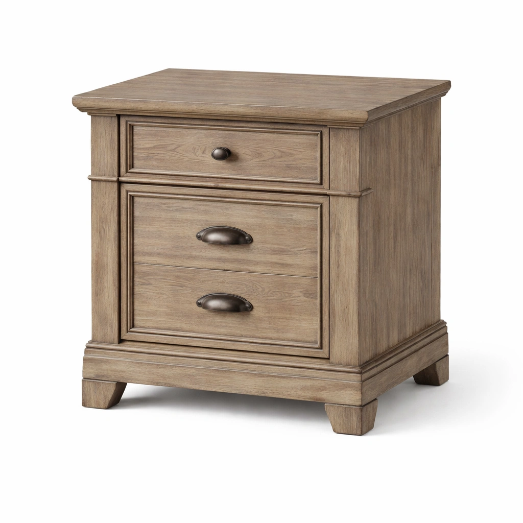Esta mesita de noche está fabricada en madera de roble, con un diseño robusto. Cuenta con dos cajones para almacenamiento, adecuados para organizar pertenencias personales.