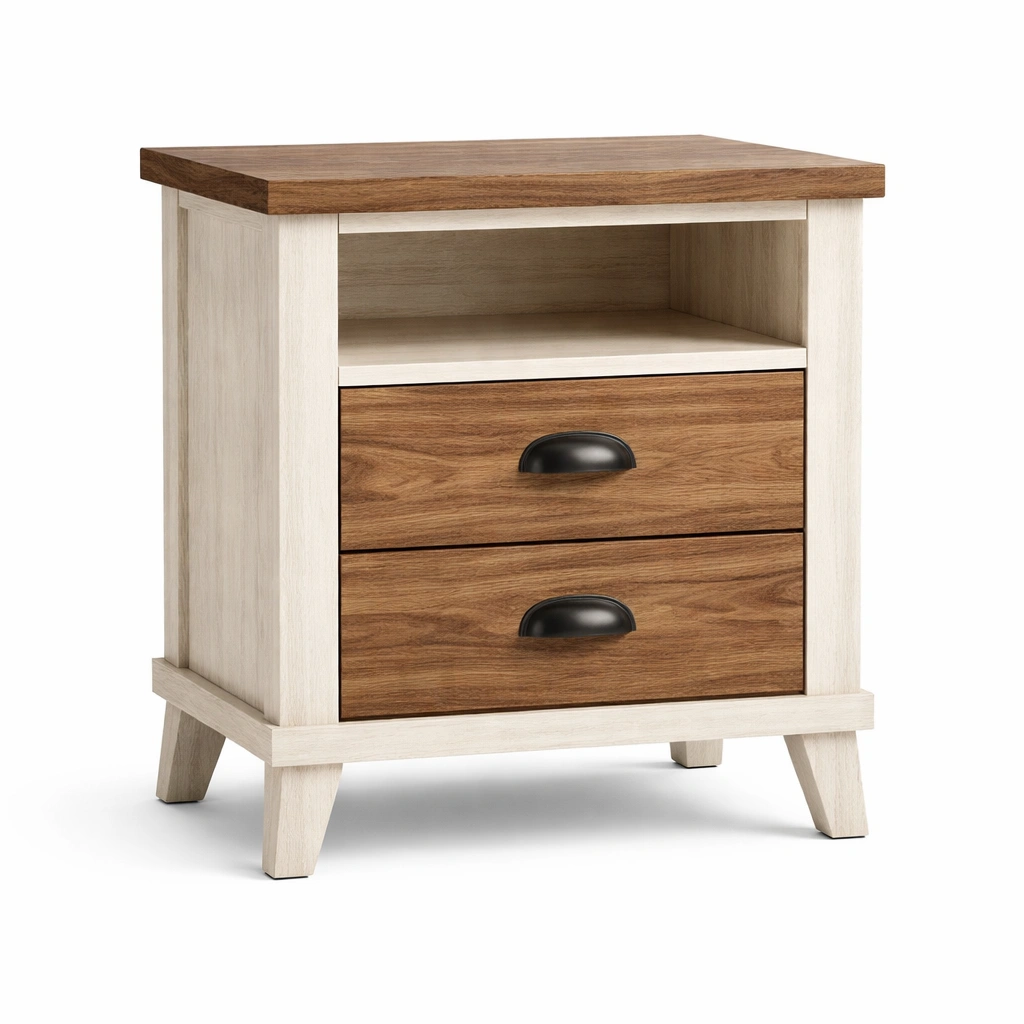 Mesita de noche de tablero de partículas con 2 cajones y estante